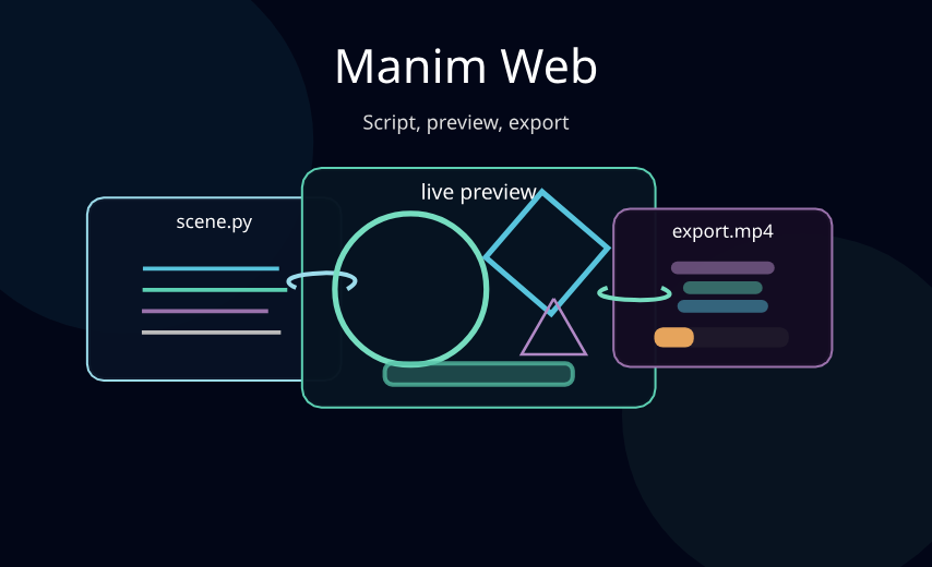 Manim Web brings scripting, live preview, captions, audio, image assets, export, and MCP-assisted iteration into one workflow shaped like the editor itself.